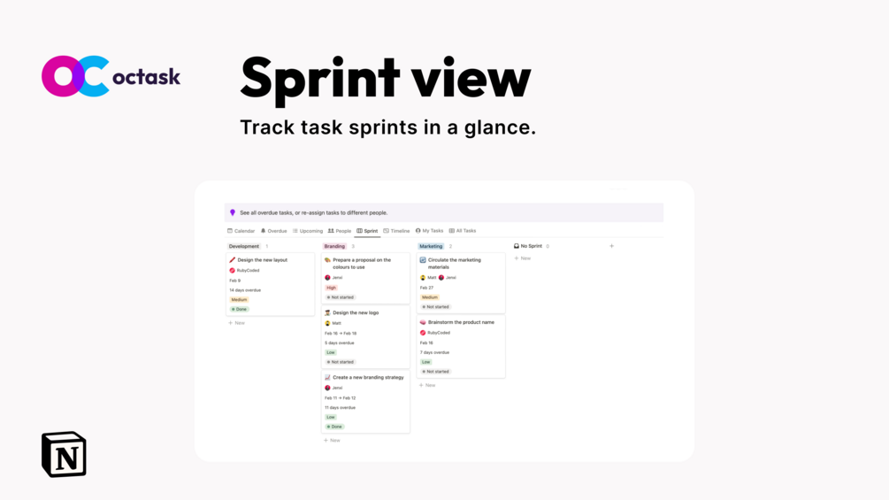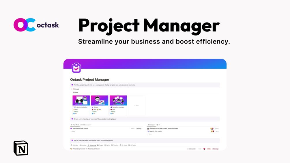 You don't need to be a project management expert or Notion expert to use the Octask Project Manager effectively. With its user-friendly interface and comprehensive features, you can manage individual and team tasks, track progress, meet deadlines, and stay organized with ease.